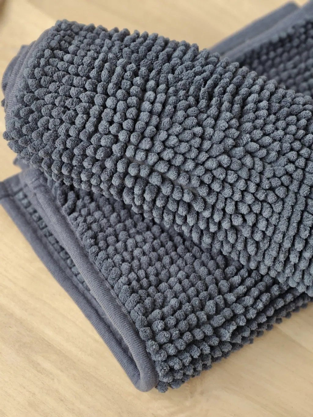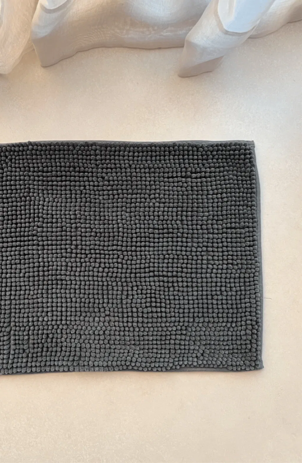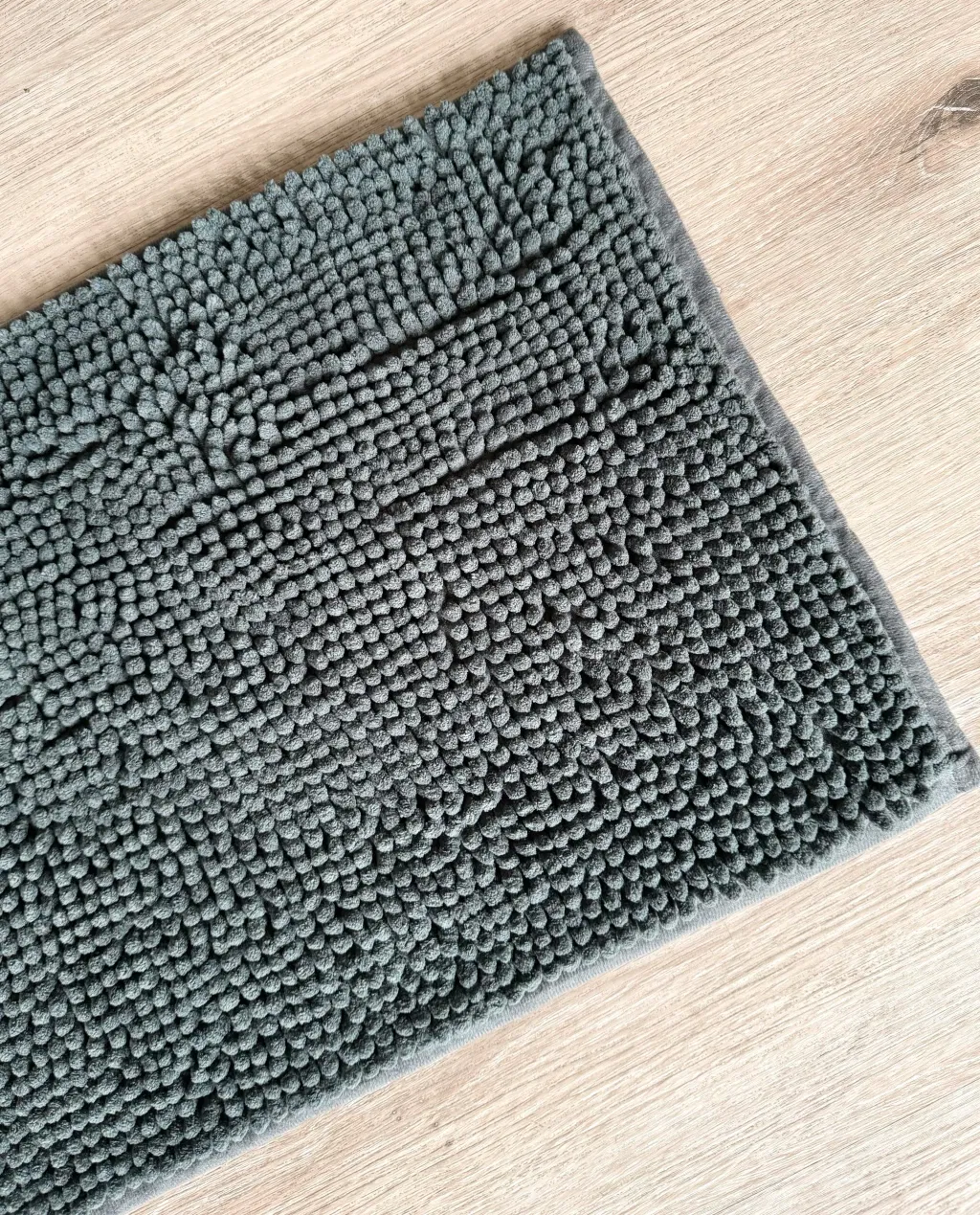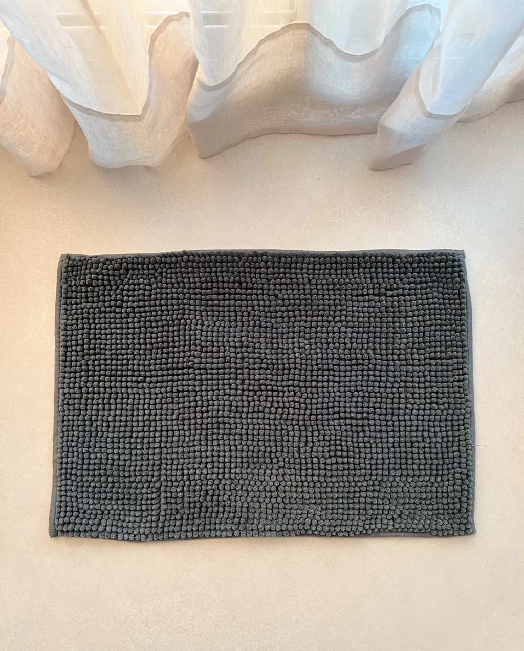 Alfombra de microfibra pelo corto y base antideslizante.