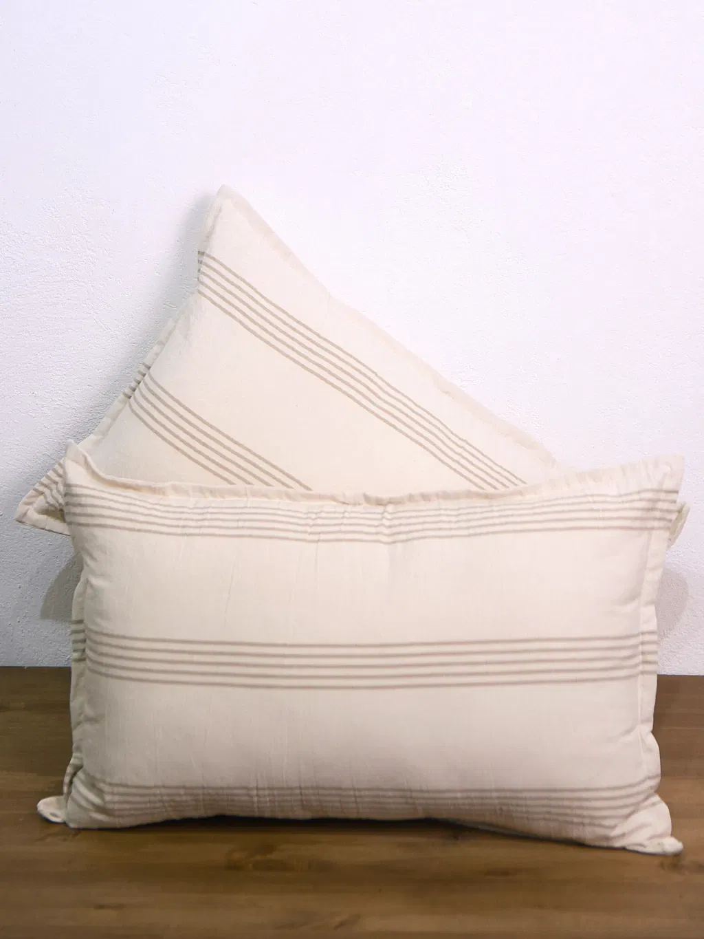 Fundas en genero 100% algodon con diseño a rayas y terminacion en pestaña.
