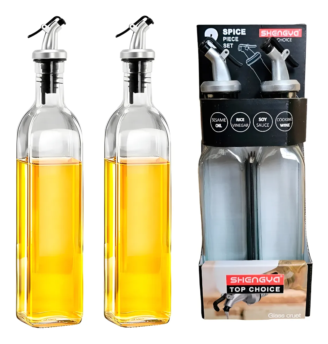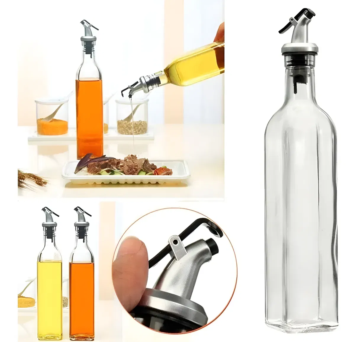 Set de Aceitera y Vinagrera fabricada en vidrio, con pico vertedor.