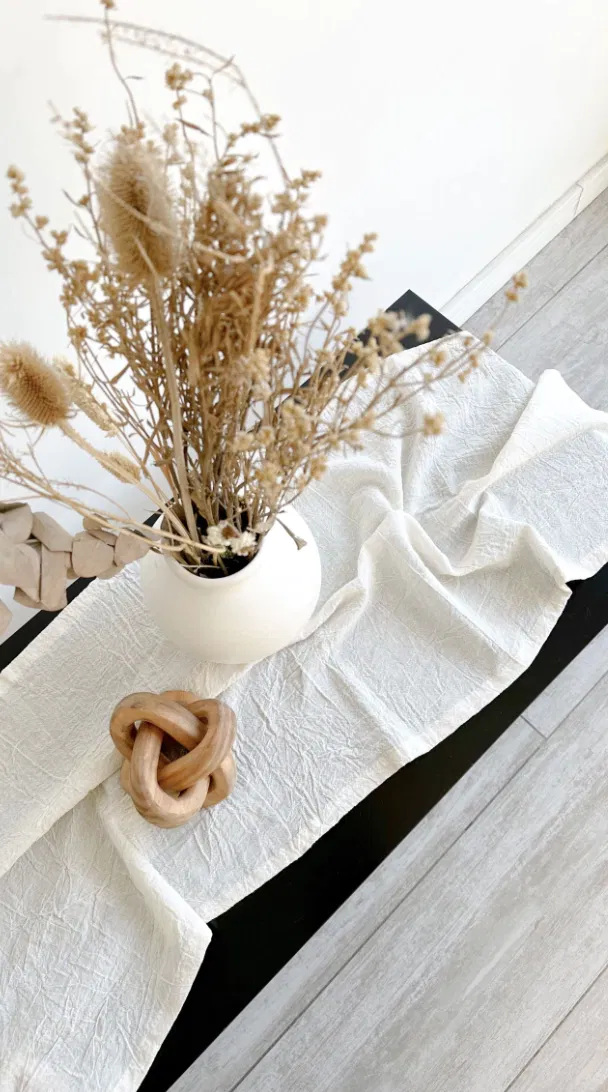 Camino confeccionado en gasa pañalera pre-lavada, 100% algodon. Al ser un producto de algodón su lavado tiene que ser con agua fría o la misma no puede superar los 30ºC apto lavarropas, secar preferentemente a la sombra.
