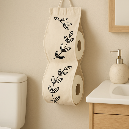Porta rollo de tusor con estampa artesanal.