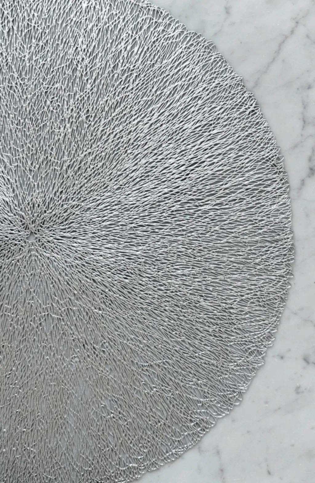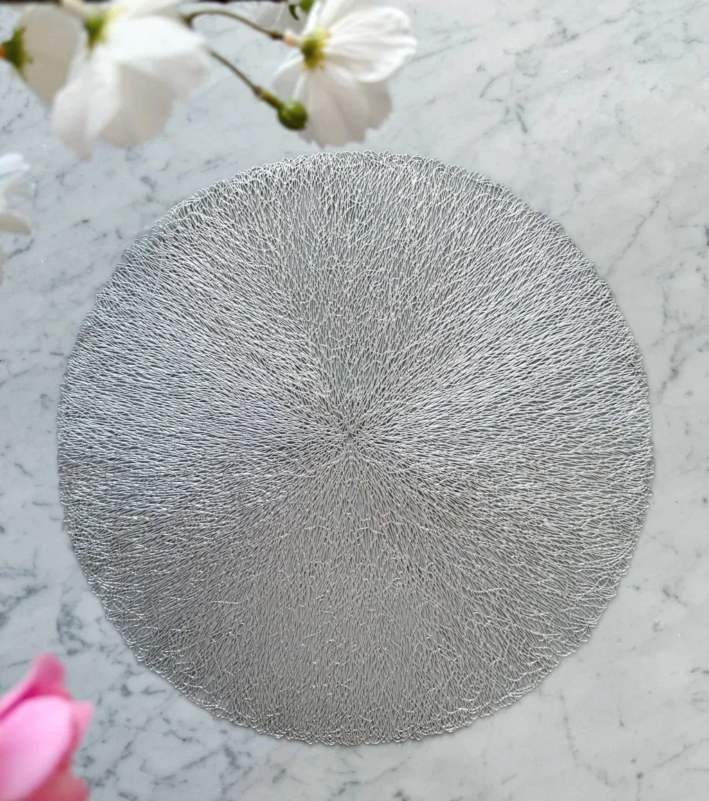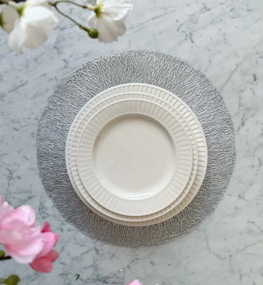 Plato de sitio de pvc calado, resistente, fácil de limpiar y aporta un toque sofisticado a cualquier ocasión.