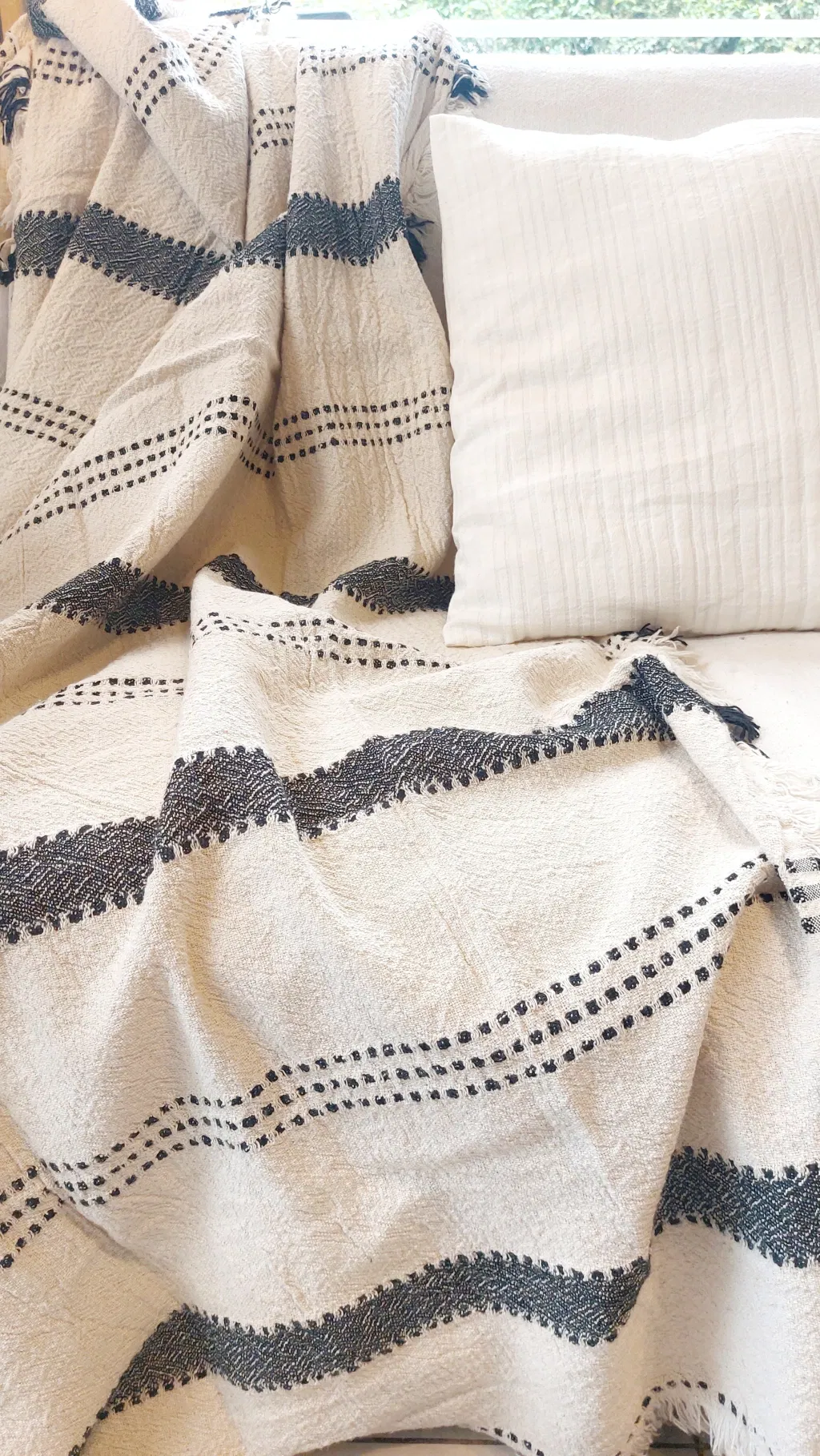 Manta 100% Algodón tejido en telar con terminacion con flecos