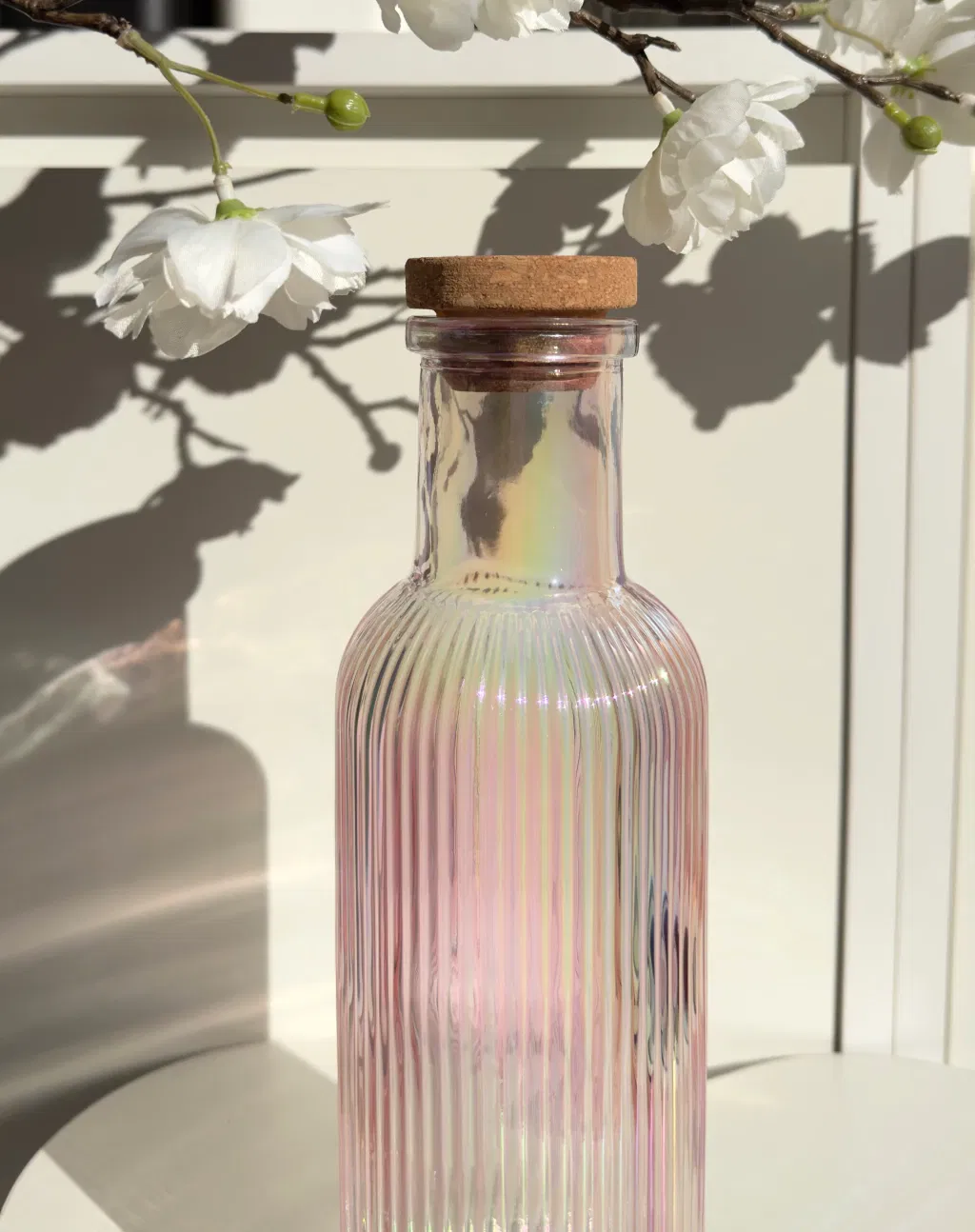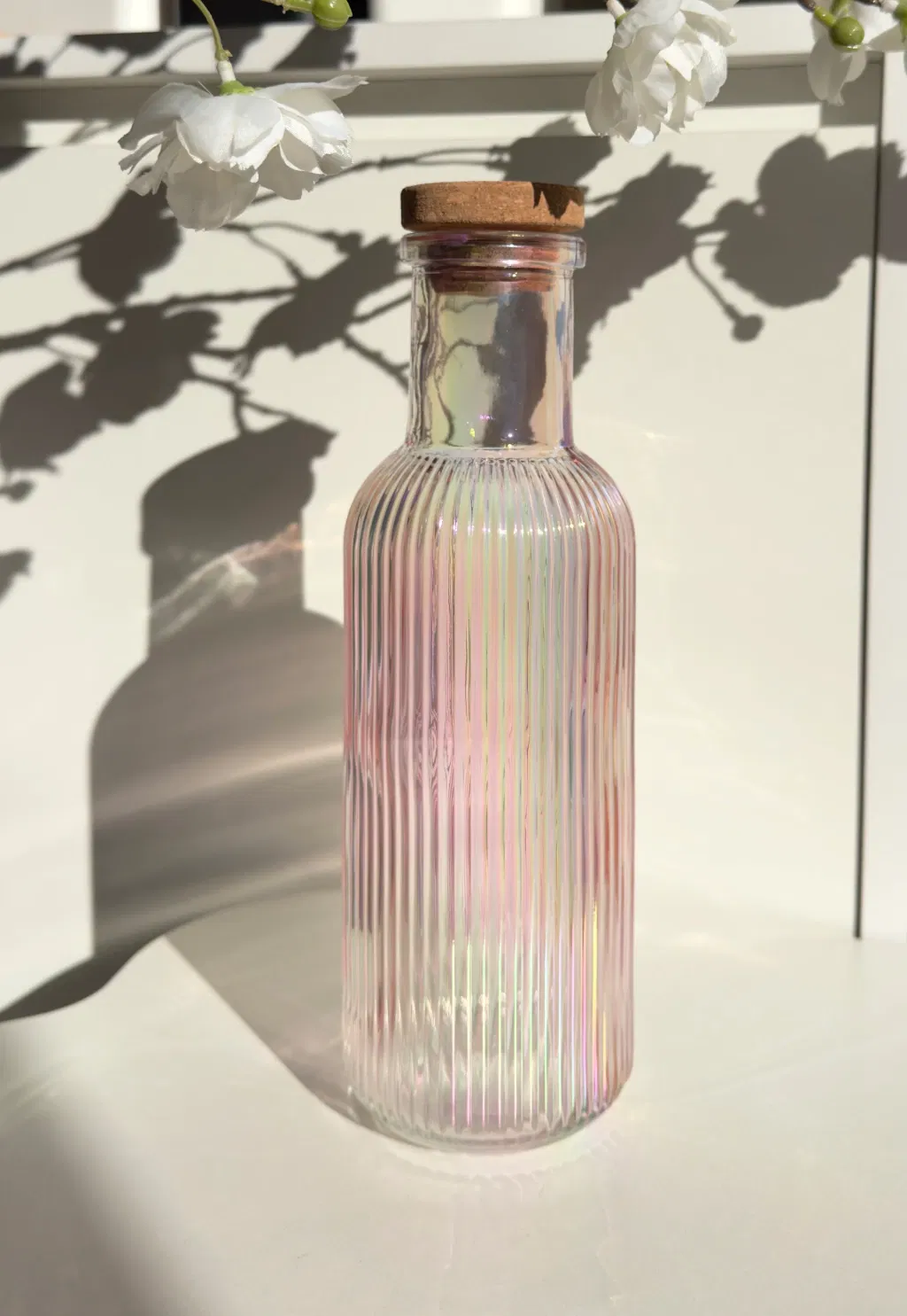 Botella color rosa tornasol, elegancia y practicidad para tu mesa.