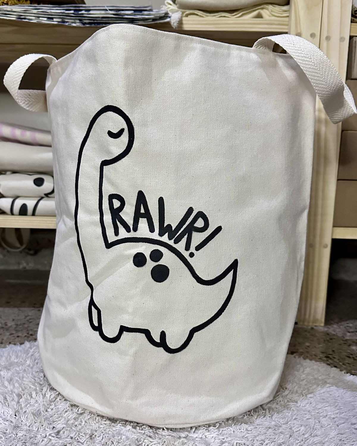 Juguetero confeccionado en lona algodon con manijas tipo mochileras.