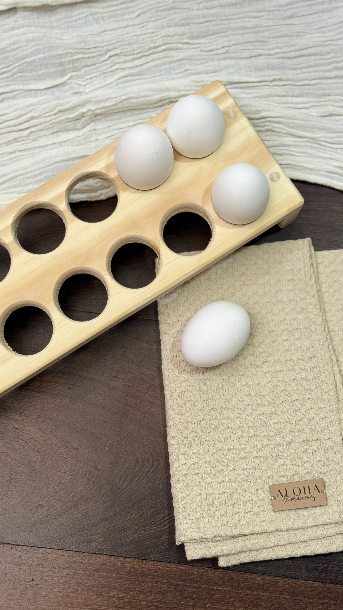 Huevera de madera de pino para 12 huevos.