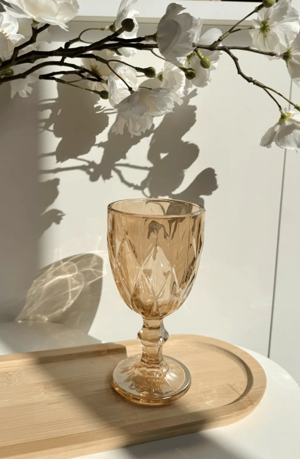 Set x6 copas de vidrio con rombos grandes de vidrio dorado