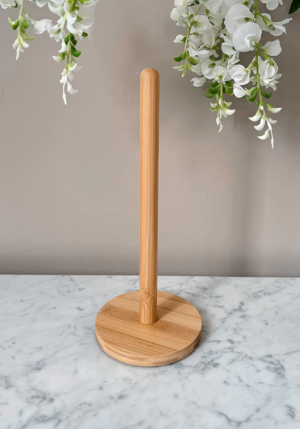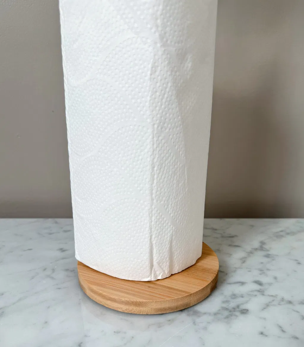 Porta rollos de cocina con base redonda de bamboo