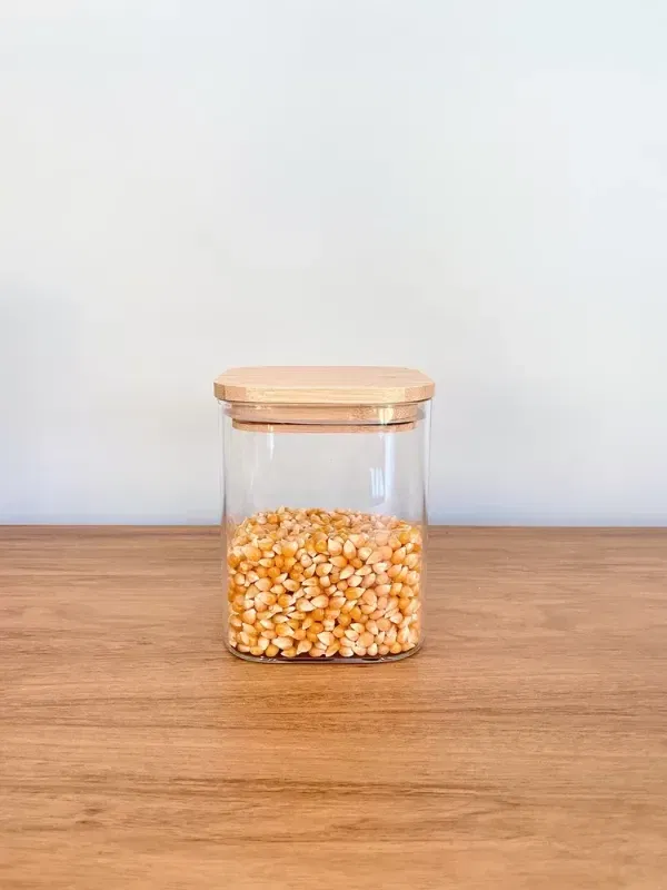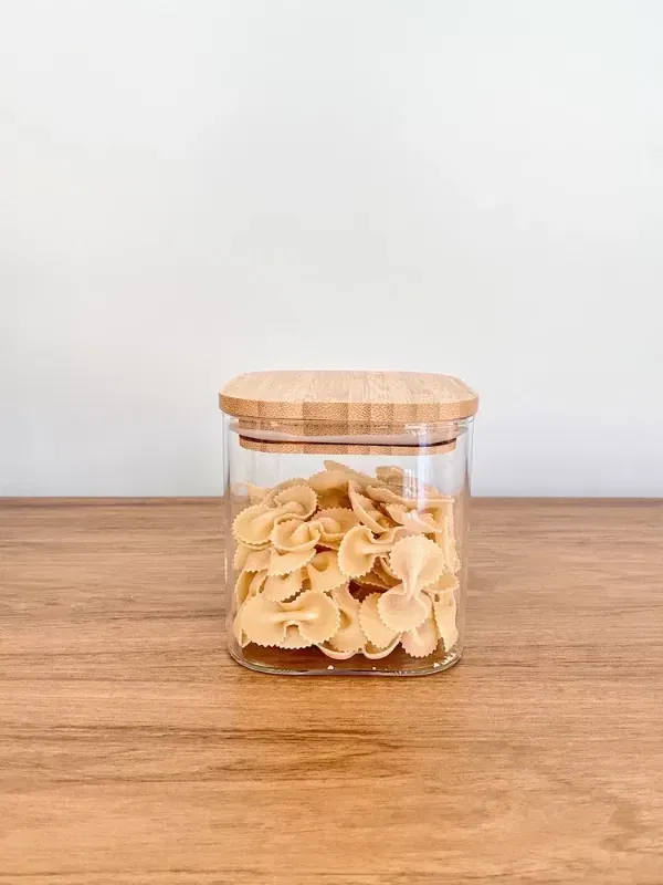 Frascos cuadrados de vidrio con tapa de bamboo hermetica.