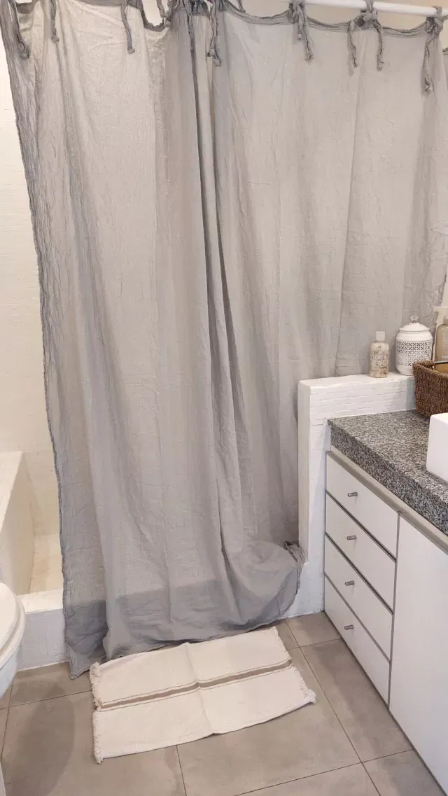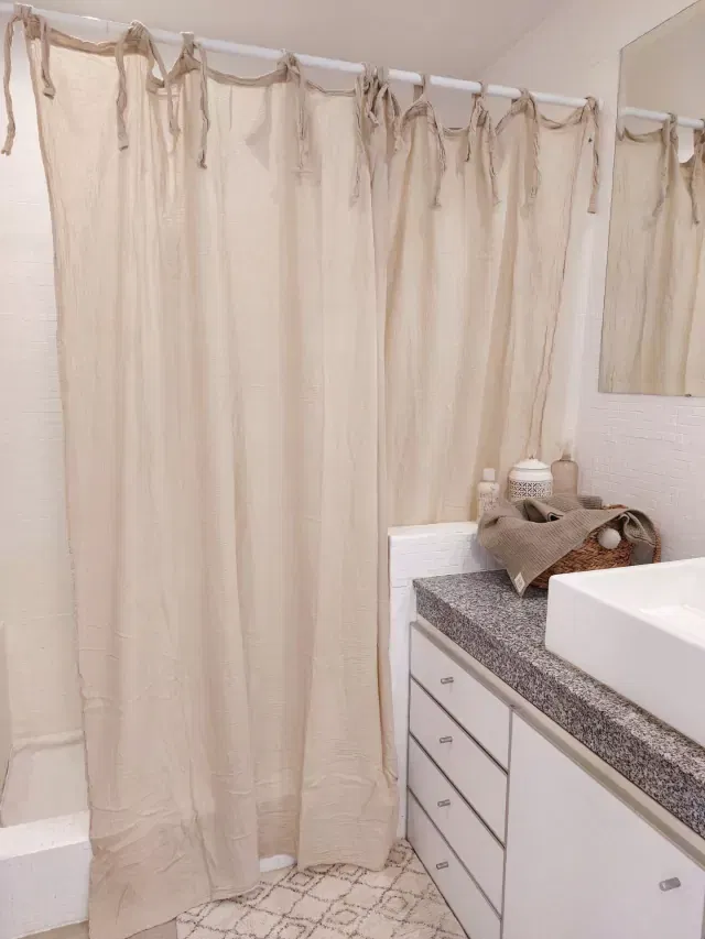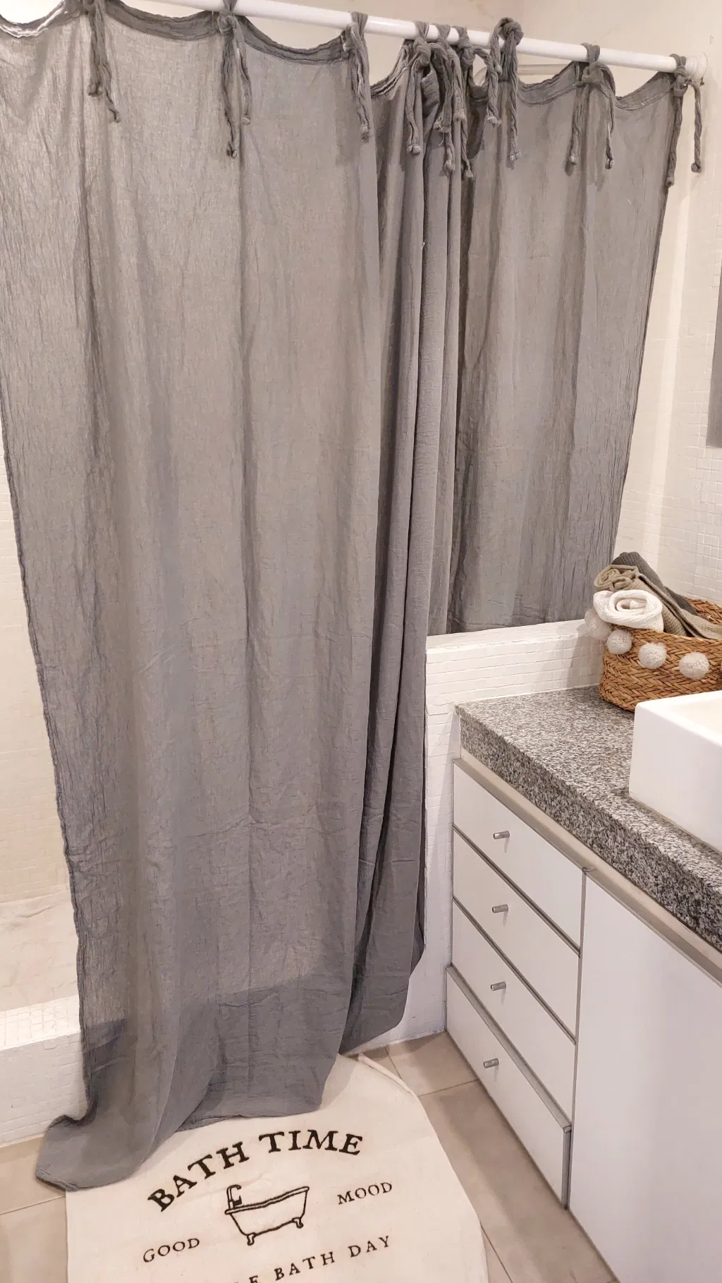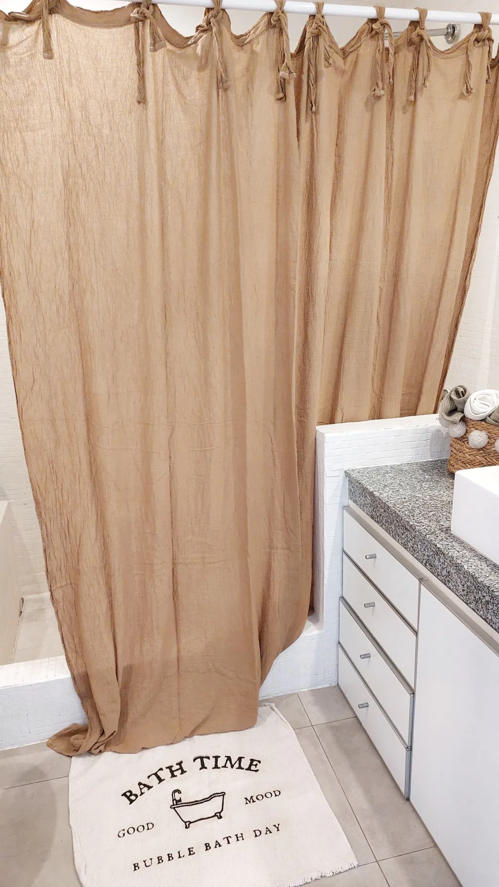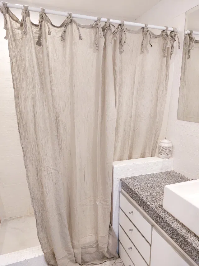 Cortina con lazos para atar, confeccionada en gasa arrugada de algodón.