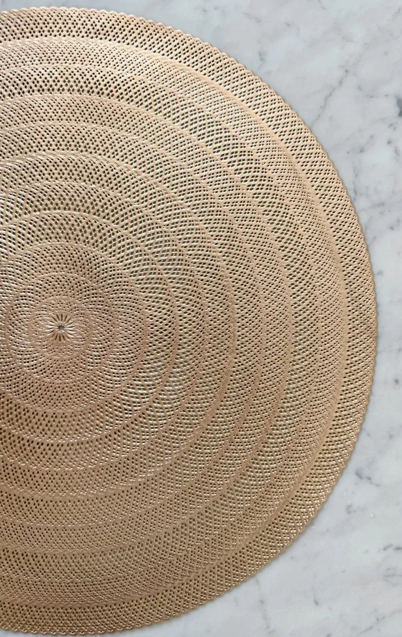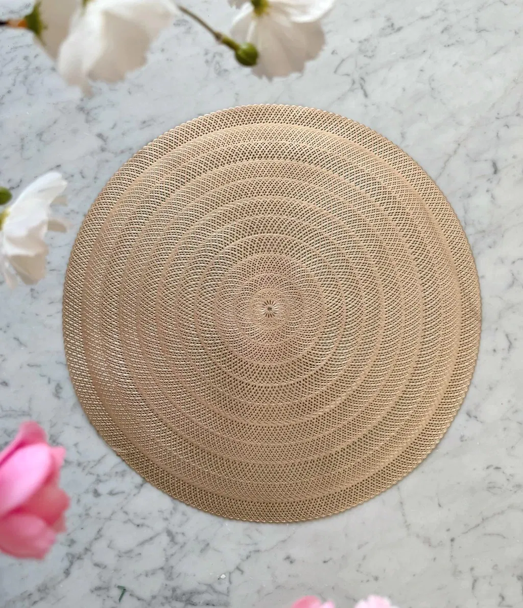 Individual fabricado en PVC calado y tramado, combina diseño elegante y resistencia.