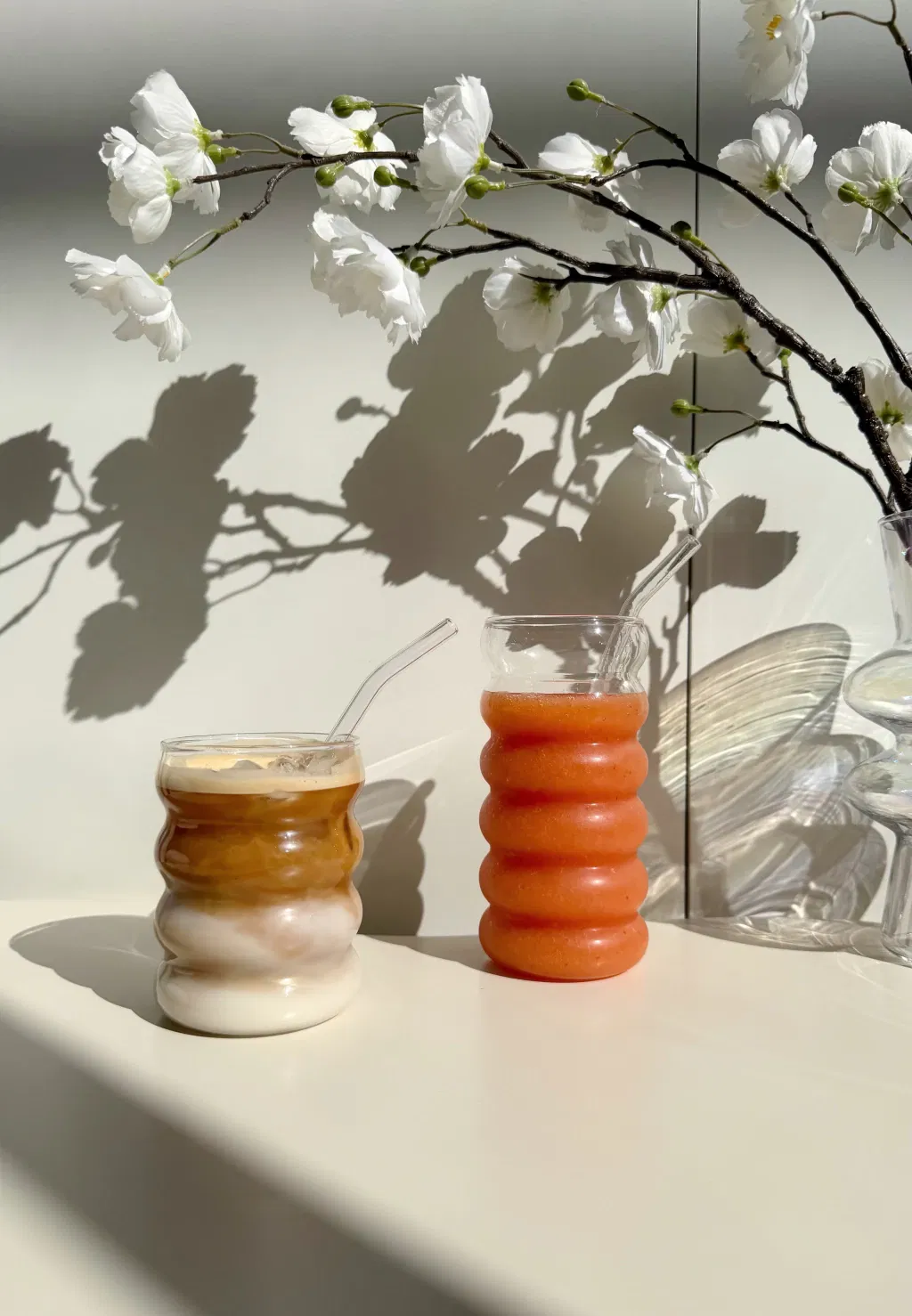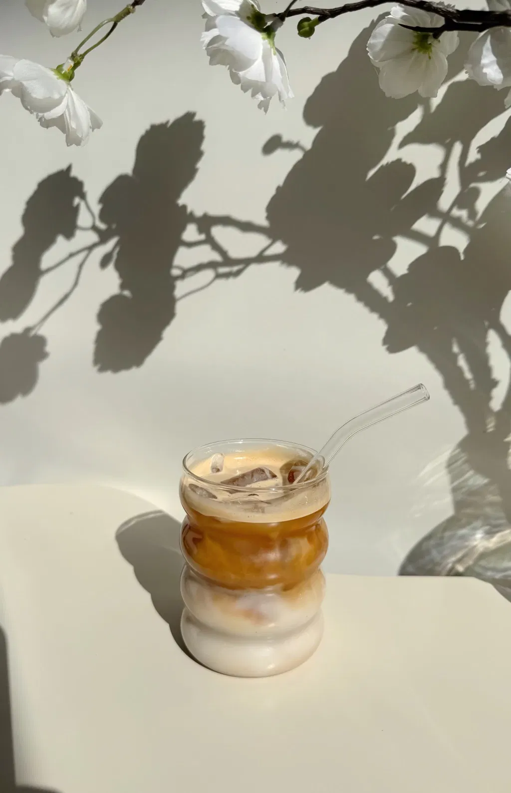Diseño moderno con detalles circulares y sorbete de vidrio.